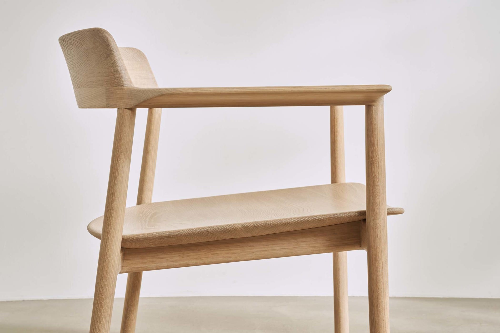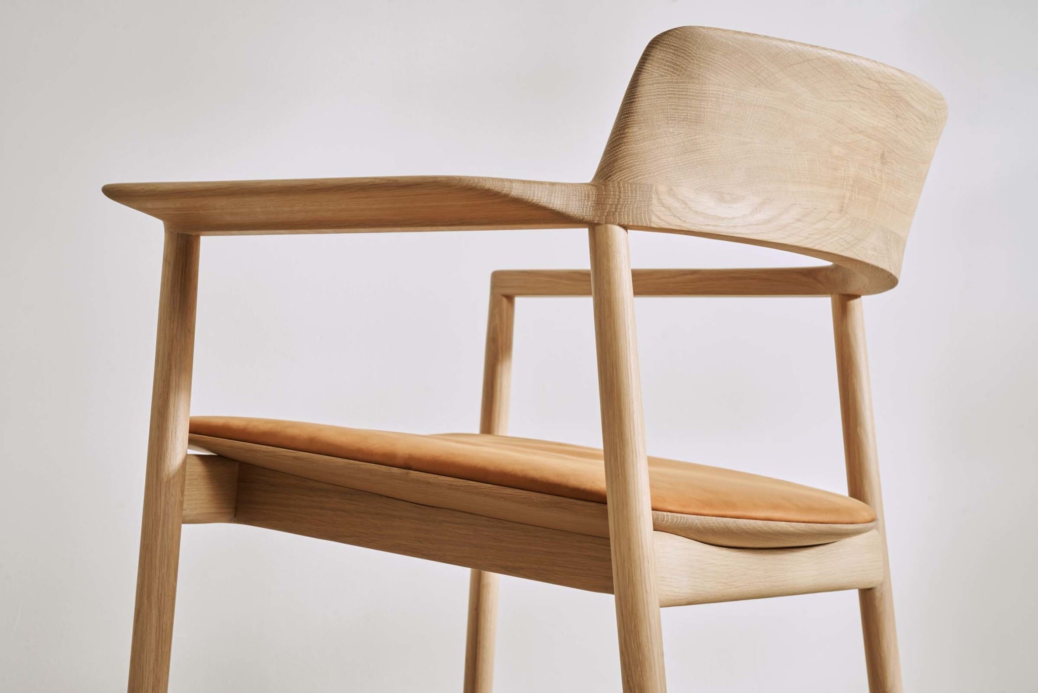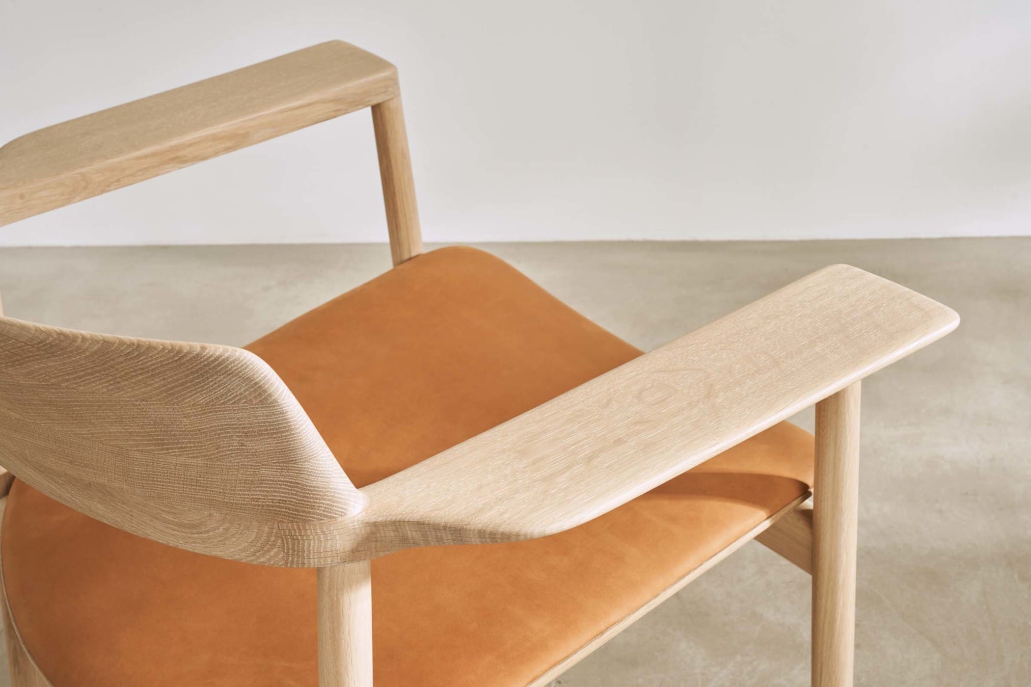 The OVO Lounge Chair is made in solid oak with a choice of ebonised or natural finish; and solid walnut. With a deep, spacious seat and widened armrests to form a support for a cup or laptop, this tactile piece is a joy to sit on.