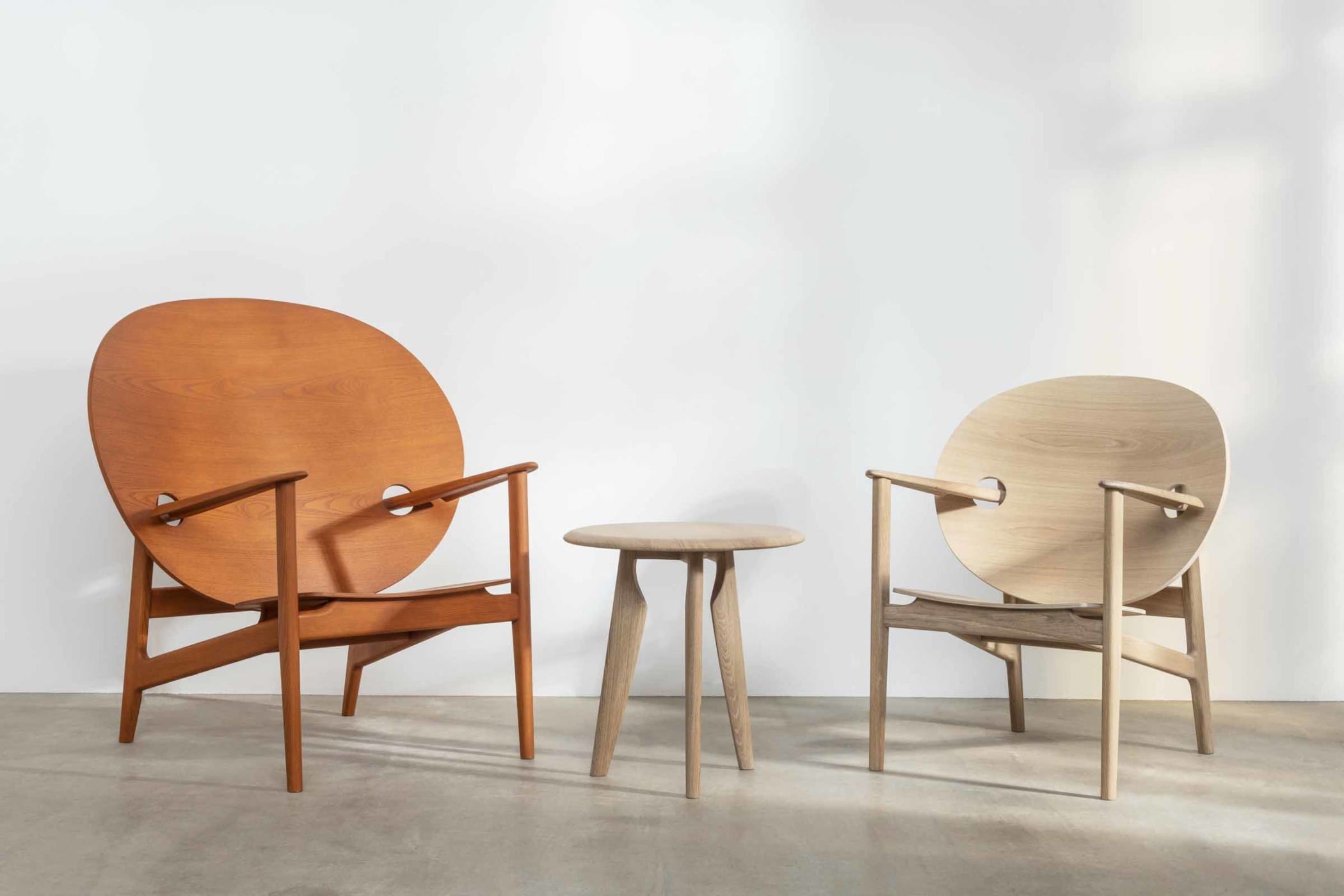 The Iklwa collection is crafted in ash and oak, available in either an Earth Orange stain or classic whitened oil. Much like a throne, the visually intense high back of the Iklwa Chair is intended to frame, enhance and empower those who sit in it.