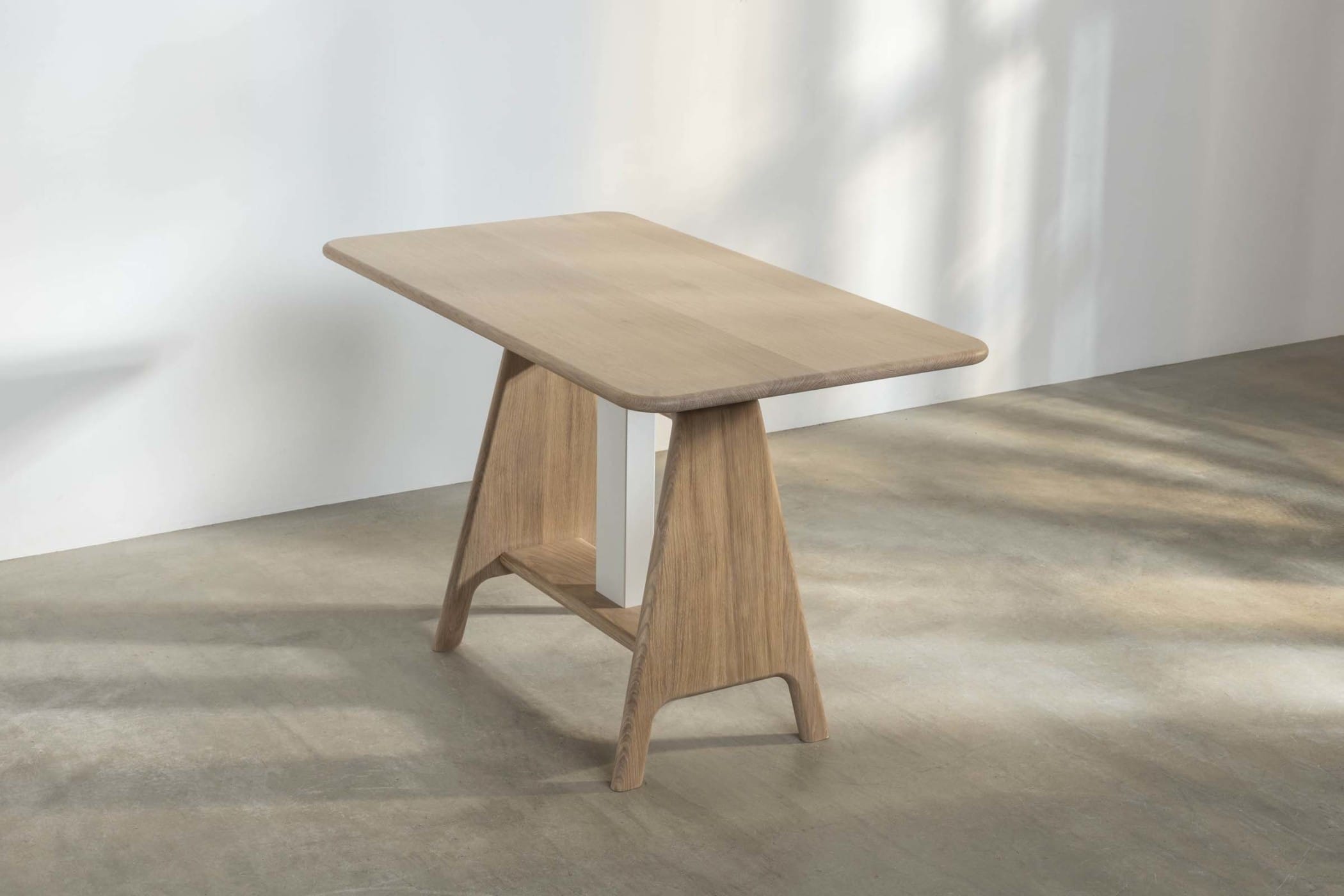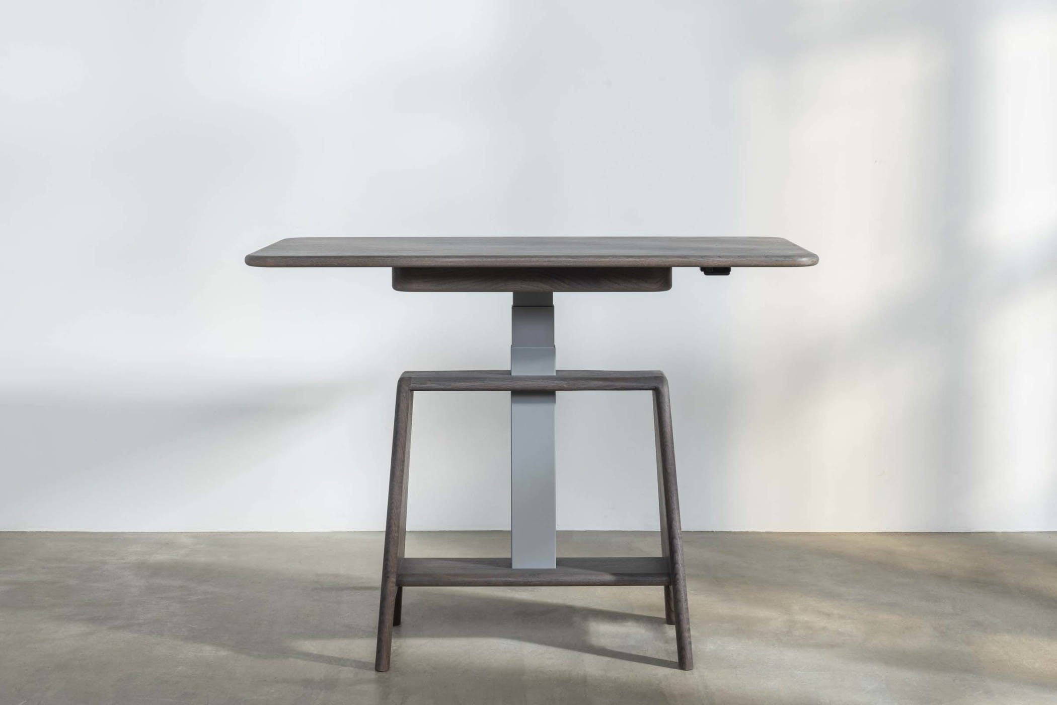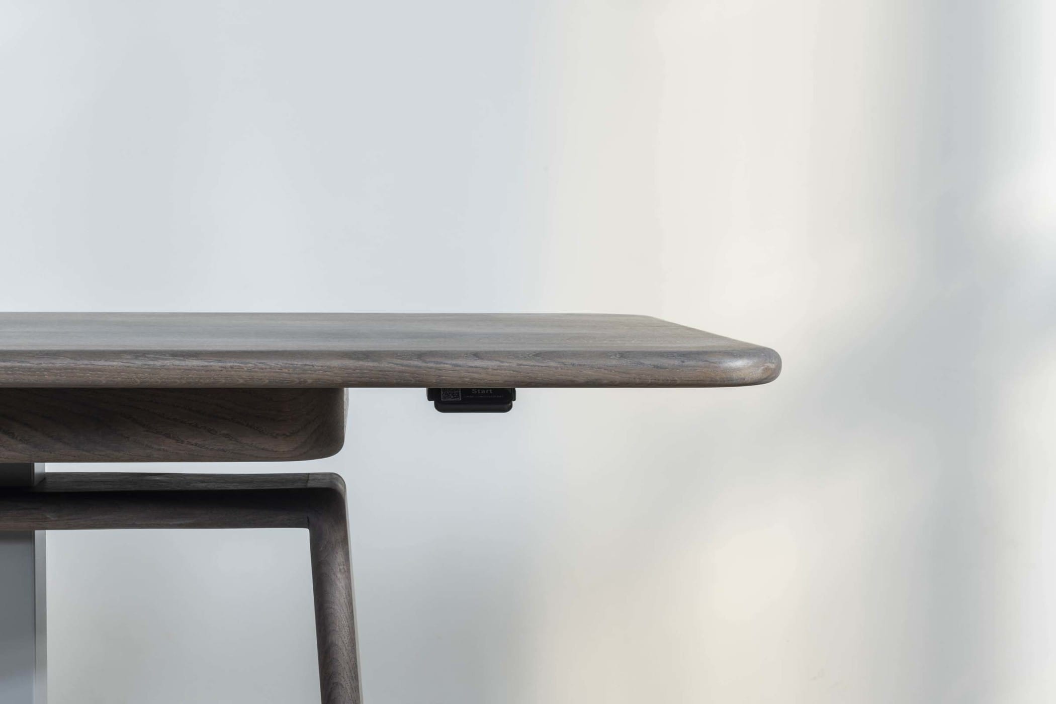 Noa is a compact, height adjustable ergonomic desk for home working designed around the tenets of biophilic design and made from solid oak. Noa is highly tactile with sides and top that are shaped with softly, rounded edges. A central sit-stand mechanism allows for the table top to smoothly rise and fall, controlled by a console on the underside.