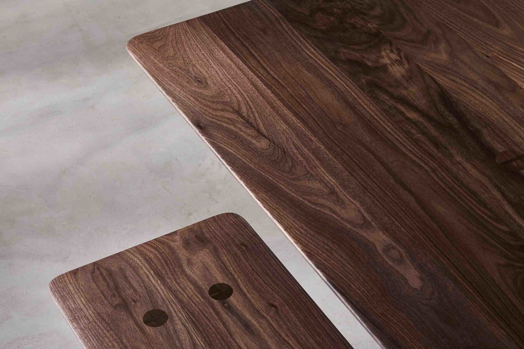 The OVO table is available in two sizes. With a pillowed surface that invites the arms to rest comfortably on the gently bevelled edge, it is available made in both solid oak with a white oiled or ebonised finish; and walnut with an oiled finish. A matching bench makes a perfect accompaniment.